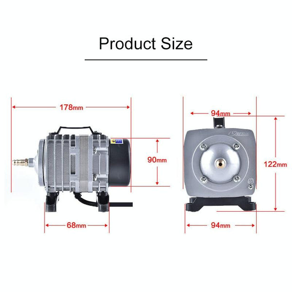 Quietly and efficiently oxygenate your fish tank or aquaculture system with the ACO-003 electromagnetic air pump. This powerful 35W compressor delivers an impressive 65 litres of air per minute, ensuring optimal oxygen levels for healthy fish and seafood. Its oil-free operation eliminates the risk of air pollution and ensures low maintenance. Built to last, the ACO-003 features durable cylinders and pistons, housed in a high-quality aluminium alloy casing for effective heat dissipation. With a US plug and a 220V/50Hz power supply (0.21A), this air pump is perfect for various applications, from home aquariums to commercial fish farms and restaurants. The 10mm outlet port allows for easy connection to air stones and other aquarium accessories. Compact and lightweight, the ACO-003 measures 225x115x130mm and weighs 2.5kg.