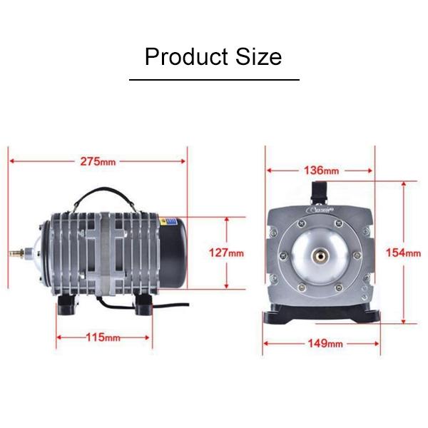 Powerfully oxygenate your fish tank or aquaculture system with the ACO-008 electromagnetic air pump. This robust 120W compressor delivers an impressive 110L/min of air flow, ensuring optimal oxygen levels for healthy fish and seafood. The oil-free design guarantees clean operation, free from noise and air pollution. Built to last, the ACO-008 features durable cylinders and pistons made from high-quality materials, housed in a heat-dissipating aluminium alloy casing. With a US plug and 10mm outlet port, it's easy to integrate into your existing setup. Ideal for fish farms, restaurants, aquariums, and large tanks.