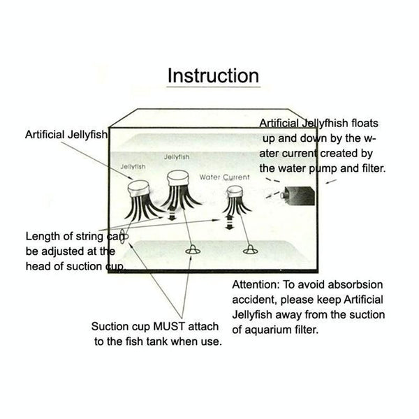 Enhance your aquarium with this vibrant, realistic silicone jellyfish. Safe for your fish and crafted from non-toxic, environmentally friendly materials, this ornament adds a captivating touch to any tank. The jellyfish features a thin, durable wire structure and a strong suction cup base, allowing it to float gracefully and stay securely in place. Please note: this jellyfish requires aquarium lighting to achieve its fluorescent effect. For best results, soak the ornament in fresh water for 2-3 days, change the water, and soak for another 3-7 days before introducing fish. Dimensions: 8 x 20cm (Yellow).