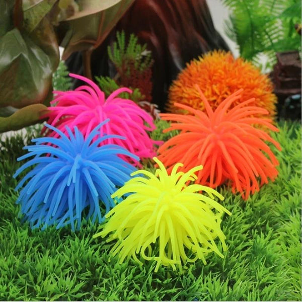 Bring the vibrant beauty of the coral reef to your aquarium with this realistic TPR Simulation Sea Urchin Ball Coral. Measuring 13cm in diameter, this large, blue sea urchin ornament provides a stunning focal point and a natural hideaway for your fish. Crafted from safe, non-toxic, and environmentally friendly TPR material, this durable ornament is designed for long-lasting use in both freshwater and saltwater aquariums. For optimal water quality, rinse the ornament before initial use and allow it to soak in fresh water for 2-3 days. Change the water and soak for another 3-7 days before introducing it to your aquarium. Enhance the natural aesthetic of your underwater world and create a captivating environment for your aquatic pets with this beautiful and functional sea urchin coral replica.