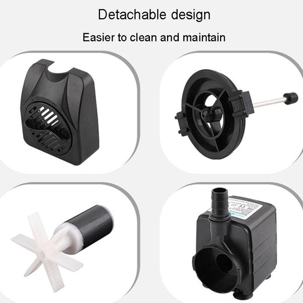 Upgrade your aquarium or water feature with the powerful and versatile JN-388 16W Submersible Water Pump with LED Lights. This compact, energy-efficient pump boasts a robust 16-watt motor, delivering impressive water flow (up to 50cm pumping height) for optimal circulation and filtration. The durable ABS plastic housing and resin sealing ensure long-lasting performance and prevent leaks, while the wear-resistant POM core allows for use in both freshwater and saltwater environments. Enjoy vibrant illumination with the integrated multi-colour LED lights, adding a touch of colour to your aquatic landscape. The adjustable flow knob allows for customised water movement, and the quiet operation ensures a peaceful environment. Easy to install and maintain, the JN-388 features a removable design for simple cleaning. Includes EU plug (220-240V/50-60HZ). Ideal for aquariums, fish tanks, rockeries, water fountains, and hydroponic systems.
