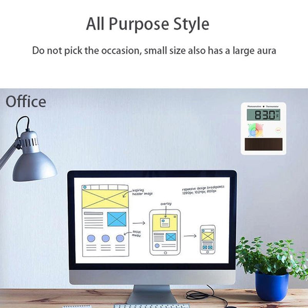 Accurately monitor your fish tank's temperature with the Pcsensor Solar-Powered LCD Thermometer. This battery-free thermometer uses light energy, so no battery replacements are needed. Simply place it on the tank wall using the magnetic backing, hang it, or stick it in place. The large LCD display provides clear, easy-to-read temperature readings in both Celsius and Fahrenheit (-20°C to 70°C / -4°F to 158°F), updating every 20 seconds. Its compact size (65x75x8.3mm) and lightweight design (30g) make it ideal for aquariums, as well as measuring room temperature, body temperature, food temperature, and the temperature of machinery and equipment. This versatile thermometer is a practical and sustainable addition to any home.