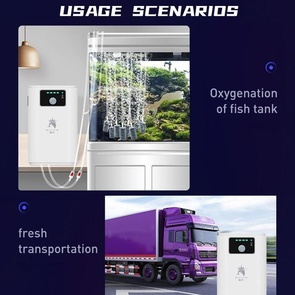 Keep your fish happy and healthy with the ZHIYANG ZY-N12 USB Aquarium Air Pump. This powerful and quiet oxygen pump provides reliable aeration for your fish tank, delivering 2 x 1.5L/min of air, perfect for aquariums needing extra oxygen. Featuring a robust pure copper motor and shock-absorbing rubber base, this pump ensures quiet operation. The intelligent chip automatically switches to battery power during outages, providing uninterrupted oxygen flow. Choose between continuous and intermittent oxygenation modes to suit your aquarium's needs. The long-lasting 2600mAh battery and convenient USB charging with power display make this pump incredibly user-friendly. Ideal for aquariums and transporting live fish. Compact and lightweight, the ZY-N12 measures 12x7.5x3.5 cm and weighs approximately 400g, with an 80cm USB cable for flexible placement.