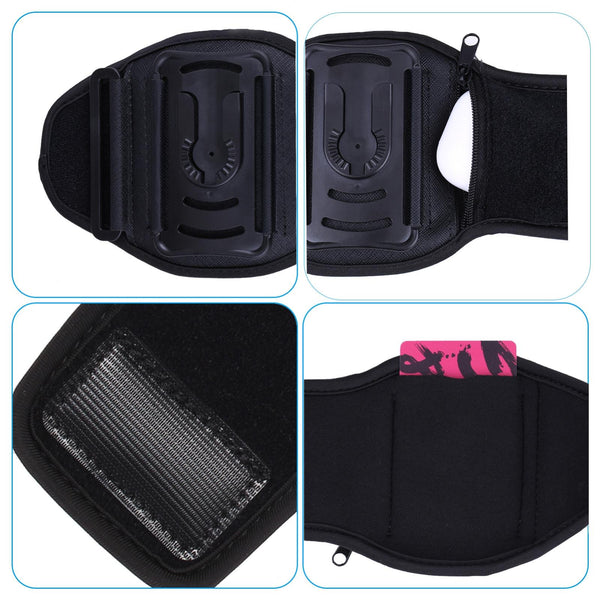 For 4.5-7 inch Phone Zipper Pocket Removable Rotating Arm Belt Bag Running Riding Phone Case(8 Claw Black)
