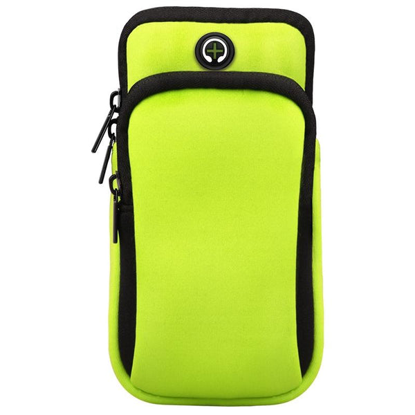For Smart Phones Below 6.0 inch Zipper Double Pocket Multi Function Sports Arm Bag with Earphone Hole(Green)