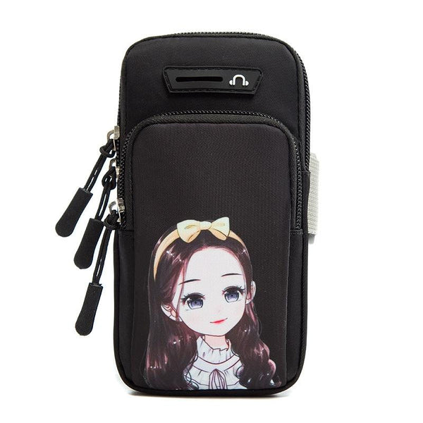 Large Running Mobile Phone Arm Bag Cartoon Mobile Phone Bag(Black Girl)
