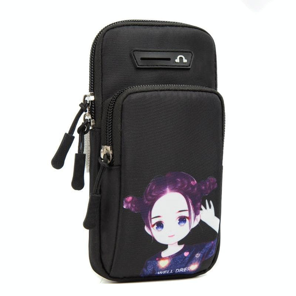 Large Running Mobile Phone Arm Bag Cartoon Mobile Phone Bag(Bull Horn Girl)