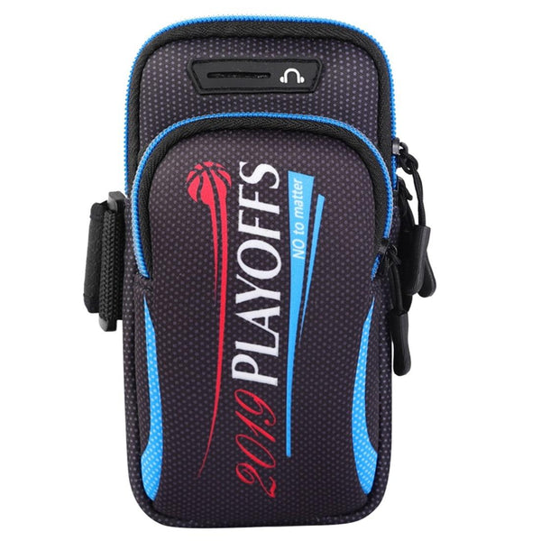 Multi-functional Universal Double Layer Zipper Letter Sport Arm Case Phone Bag with Earphone Hole for 6.6 Inch or Below Smartphones(Blue)