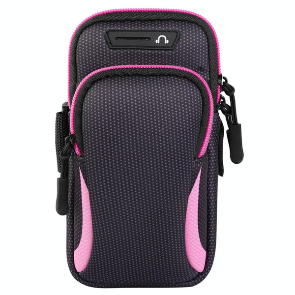 Multi-functional Universal Double Layer Zipper Sport Arm Case Phone Bag with Earphone Hole for 6.6 Inch or Below Smartphones(Pink)