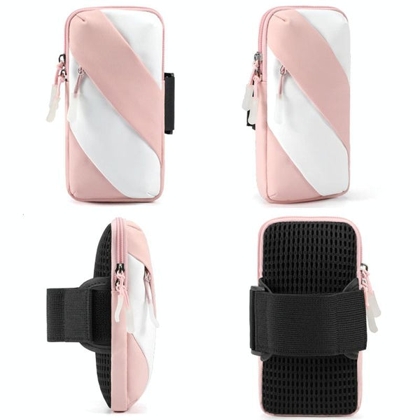 Running Mobile Phone Arm Bag Outdoor Equipment Wrist Bag(Pink White)
