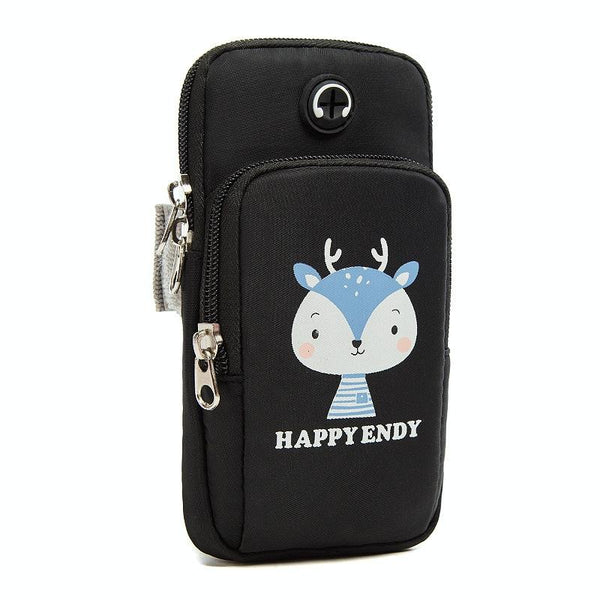 Small Running Mobile Phone Arm Bag Cartoon Mobile Phone Bag(Black Deer)