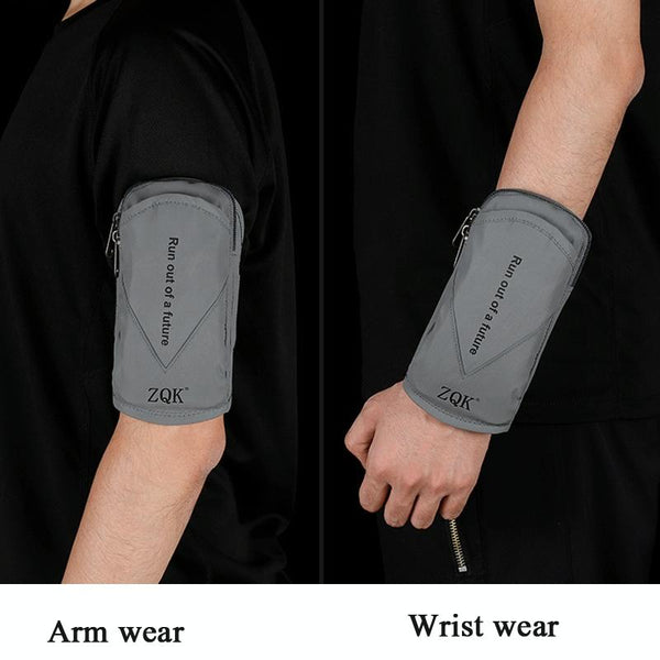 ZQK Sports Reflective Arm Bag Night Running Mobile Phone Arm Bag Is Suitable For Mobile Phones Under 6 Inches(Black)