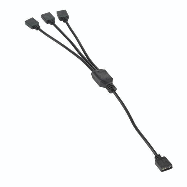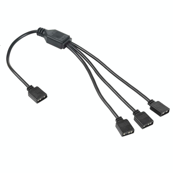 Extend your PC's RGB lighting with this 30cm 5V 3-pin Aura RGB motherboard splitter cable. Durable and easy to install, this black splitter cable allows you to connect multiple addressable RGB (ARGB) devices to a single motherboard header. Compatible with popular motherboard brands like ASUS, MSI, and ASRock, ensuring seamless integration with your existing setup. Important: This cable is specifically for 5V 3-pin ARGB devices and does not support motherboard fan headers. Ensure your RGB fans or LED strips use a compatible 5V 3-pin connector before purchasing. Constructed from durable ABS plastic for long-lasting performance.