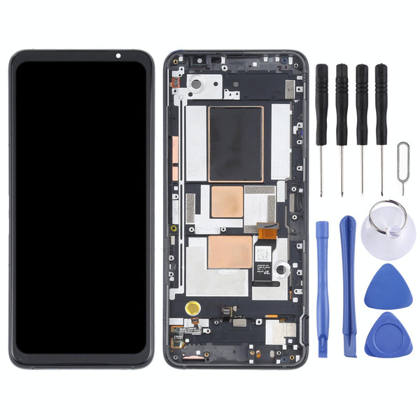 - High-quality replacement OLED screen and frame assembly for Asus ROG Phone 5 ZS673KS (Black).