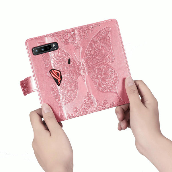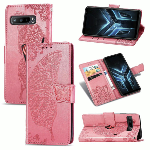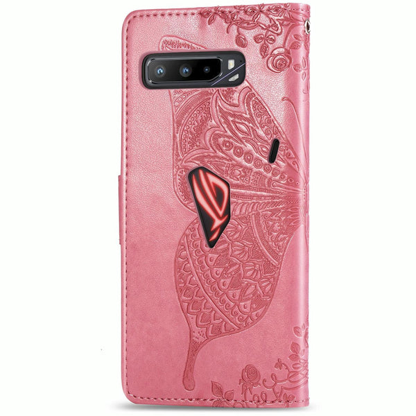 For Asus ROG Phone 3 ZS661KS Butterfly Love Flower Embossed Horizontal Flip Leather Case with Bracket / Card Slot / Wallet / Lanyard(Pink)
