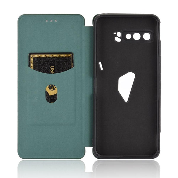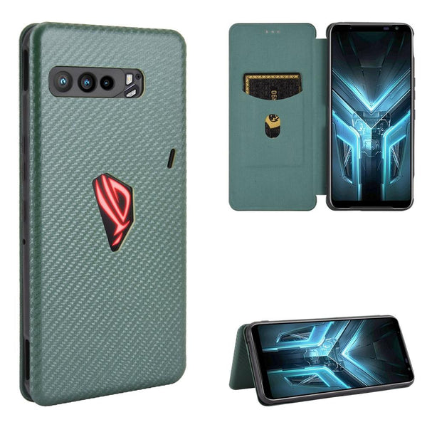 For Asus ROG Phone 3 ZS661KS Carbon Fiber Texture Horizontal Flip TPU + PC + PU Leather Case with Card Slot(Green)