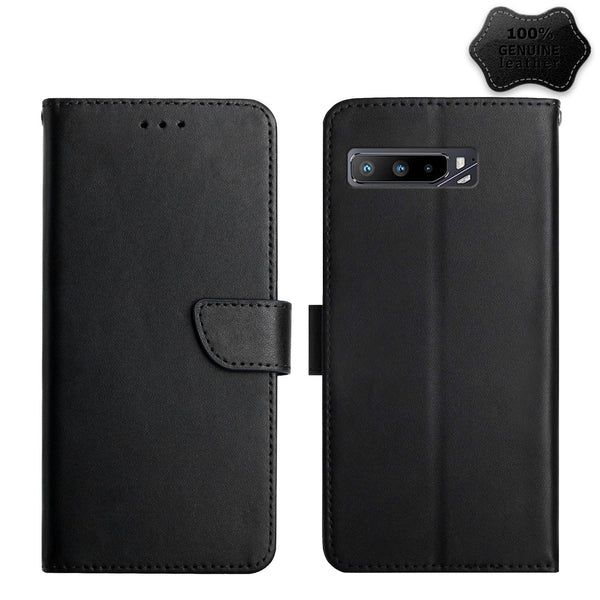 For Asus ROG Phone 3 ZS661KS Genuine Leather Fingerprint-proof Flip Phone Case(Black)
