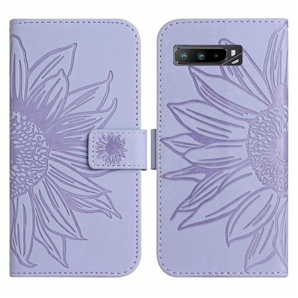 For Asus ROG Phone 3 ZS661KS Skin Feel Sun Flower Pattern Flip Leather Phone Case with Lanyard(Purple)