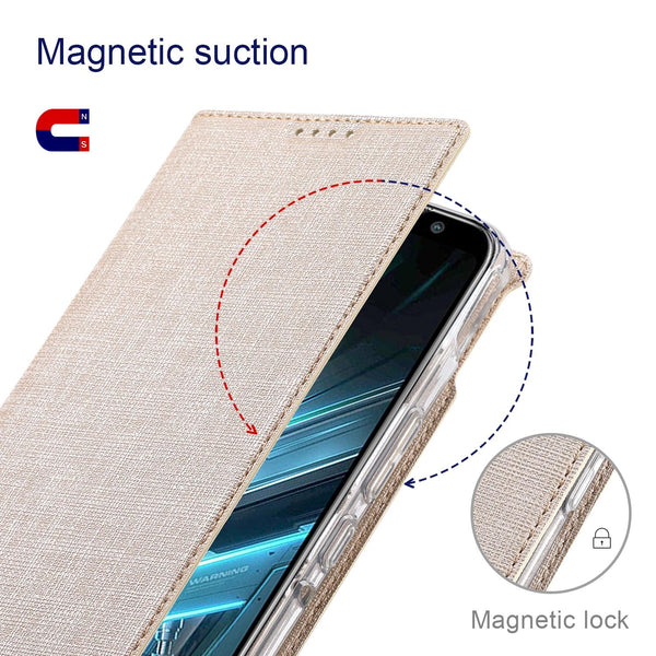 For Asus ROG Phone 3 ZS661KS ViLi DMX Series Shockproof TPU + PU Leather Magnetic Attraction Horizontal Flip Case with Card Slot & Holder(Gold)