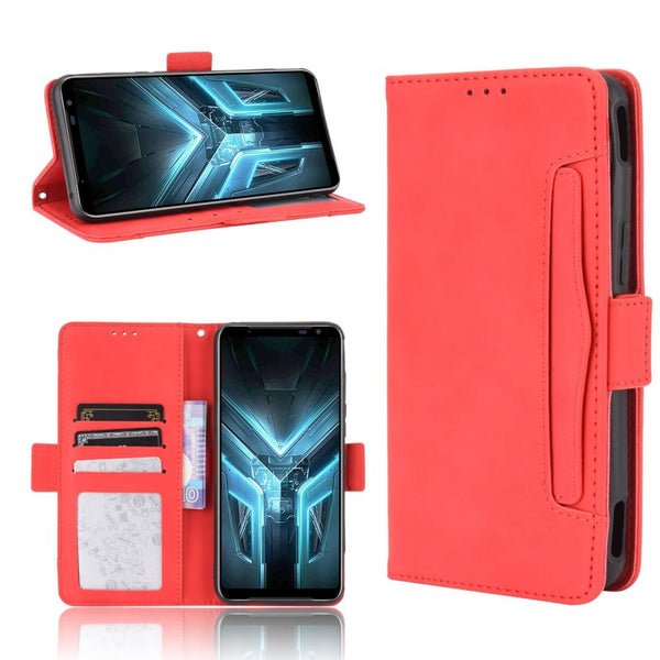 For Asus ROG Phone 3 ZS661KS Wallet Style Skin Feel Calf Pattern Leather Case with Separate Card Slot(Red)
