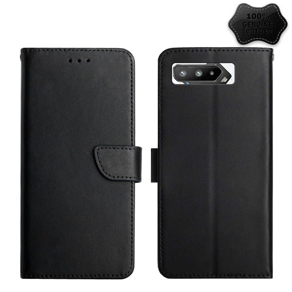 For Asus ROG Phone 5 ZS673KS Genuine Leather Fingerprint-proof Flip Phone Case(Black)