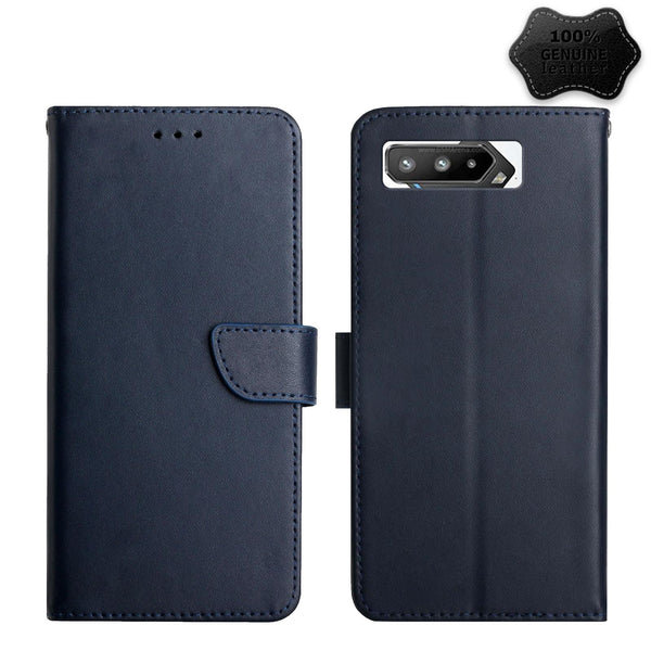For Asus ROG Phone 5 ZS673KS Genuine Leather Fingerprint-proof Flip Phone Case(Blue)