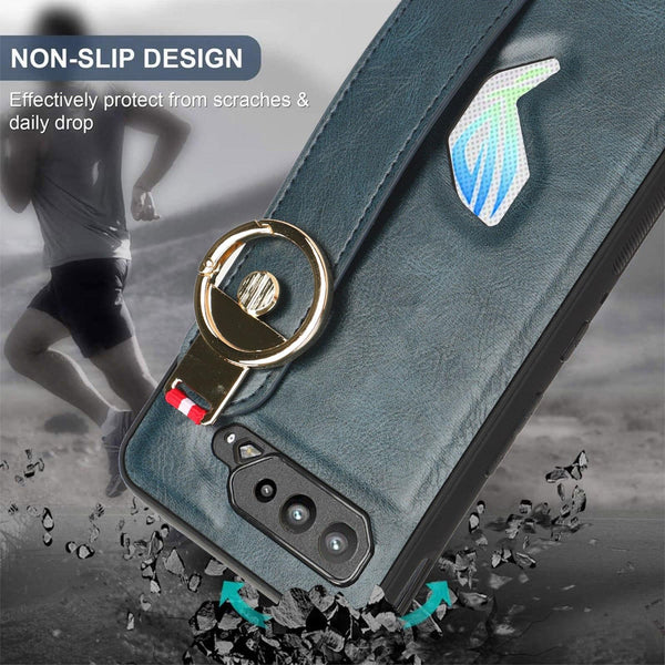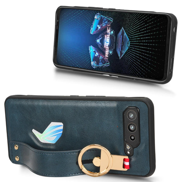 For Asus ROG Phone 5 ZS673KS Wristband Leather Back Phone Case(Blue)