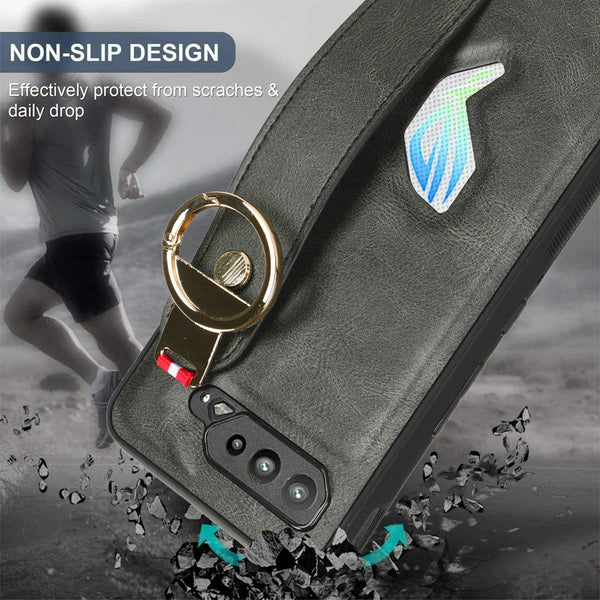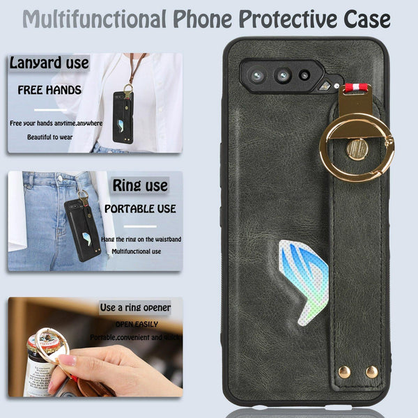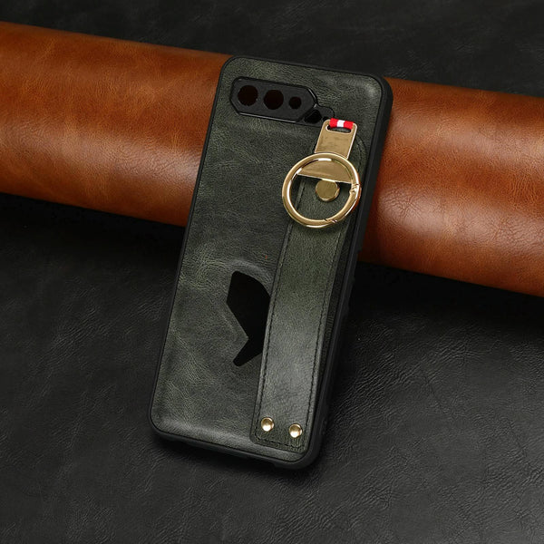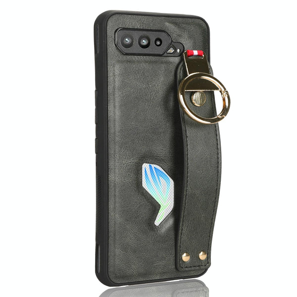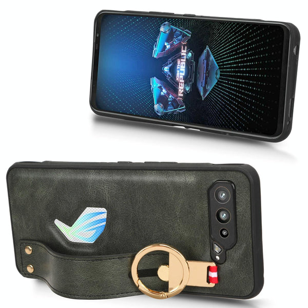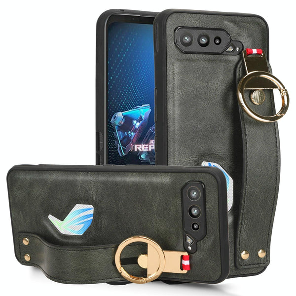 For Asus ROG Phone 5 ZS673KS Wristband Leather Back Phone Case(Green)