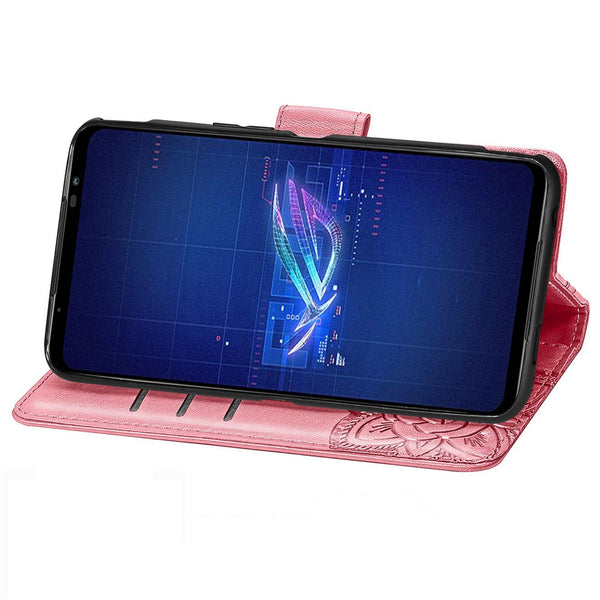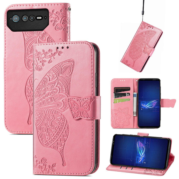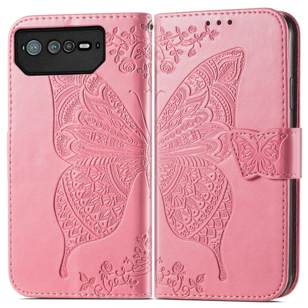 For Asus ROG Phone 6 Butterfly Love Flower Embossed Flip Leather Phone Case(Pink)