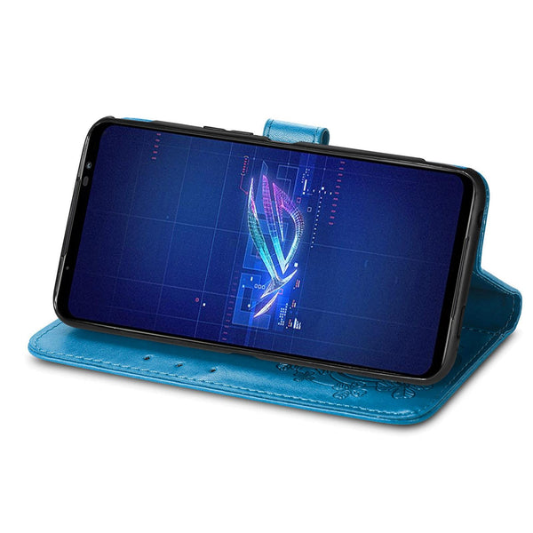 For Asus ROG Phone 6 Four-leaf Clasp Embossed Buckle Leather Phone Case(Blue)