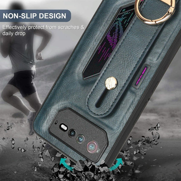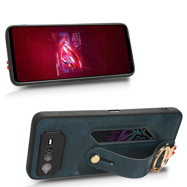 For Asus ROG Phone 6 / ROG6 Wristband Leather Back Phone Case(Blue)