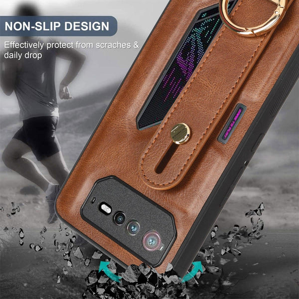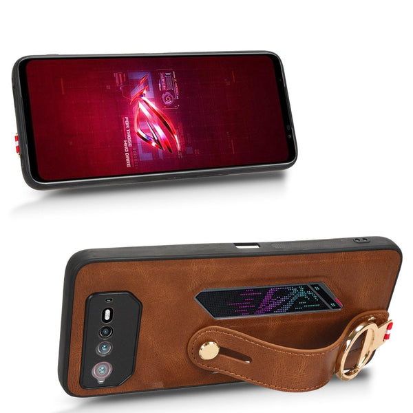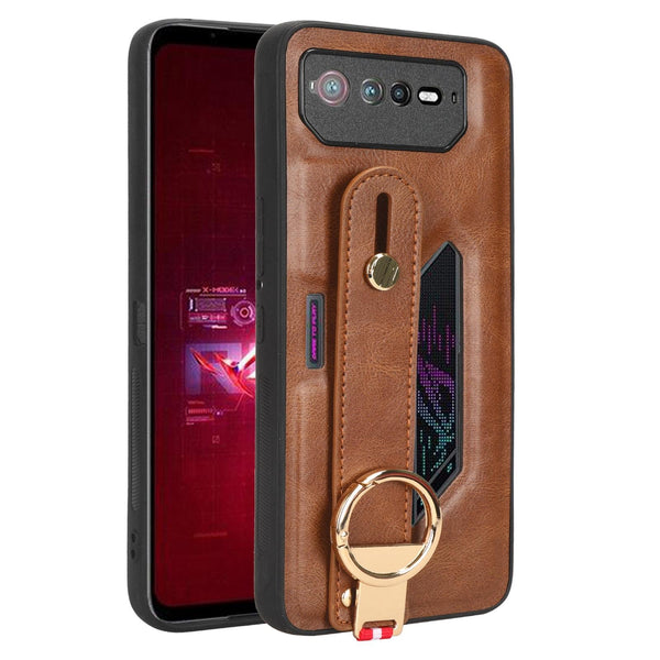 For Asus ROG Phone 6 / ROG6 Wristband Leather Back Phone Case(Brown)