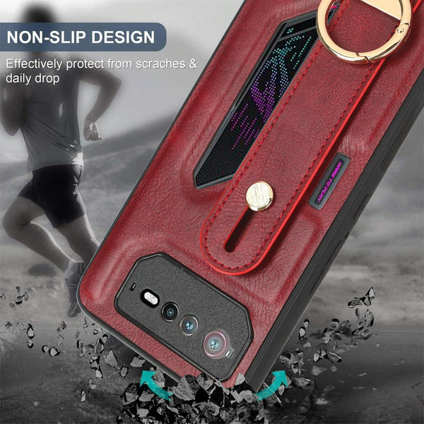 For Asus ROG Phone 6 / ROG6 Wristband Leather Back Phone Case(Red)