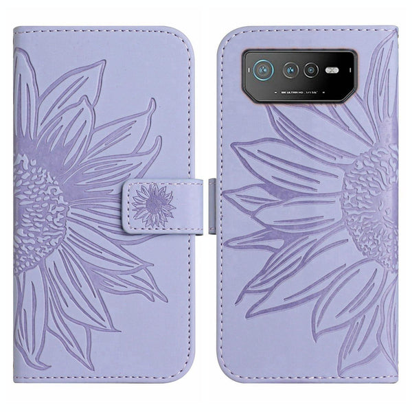For Asus ROG Phone 6 Skin Feel Sun Flower Pattern Flip Leather Phone Case with Lanyard(Purple)