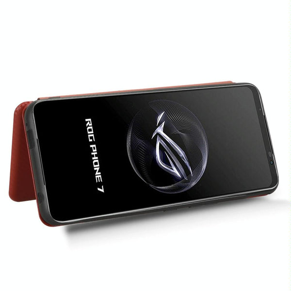 For ASUS ROG Phone 7 Carbon Fiber Texture Flip Leather Phone Case(Brown)