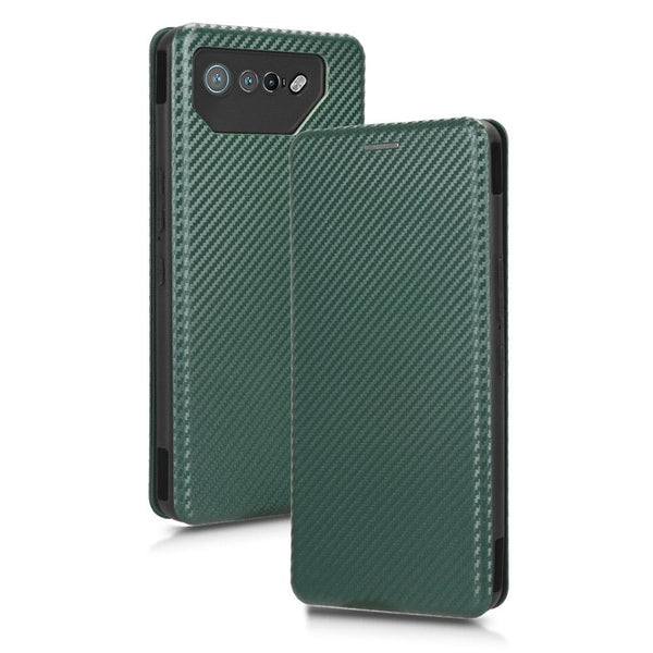For ASUS ROG Phone 7 Carbon Fiber Texture Flip Leather Phone Case(Green)