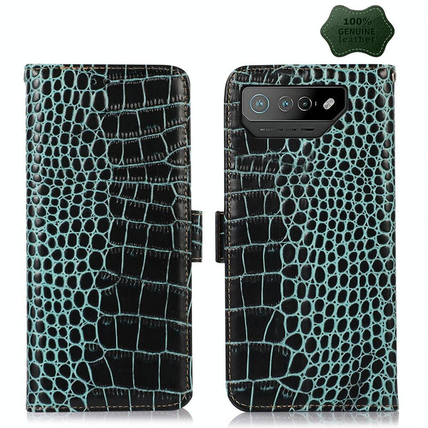 For Asus ROG Phone 7 Crocodile Top Layer Cowhide Leather Phone Case(Green)