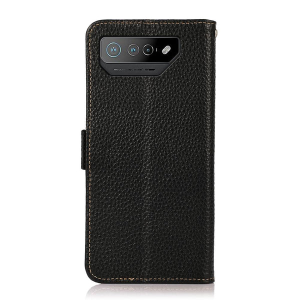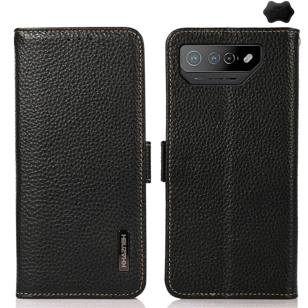 For Asus ROG Phone 7 KHAZNEH Side-Magnetic Litchi Genuine Leather RFID Phone Case(Black)