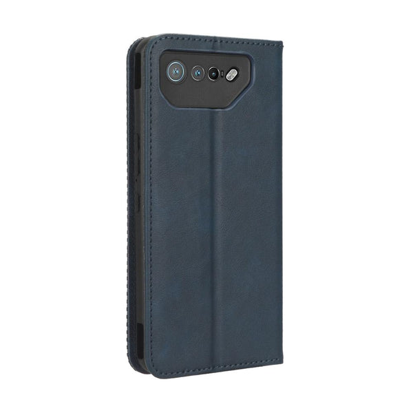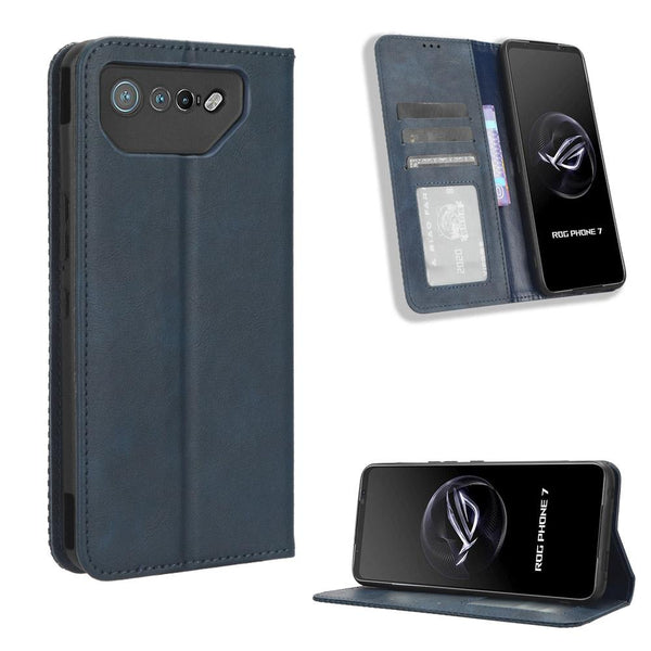 For ASUS ROG Phone 7 Magnetic Buckle Retro Texture Leather Phone Case(Blue)