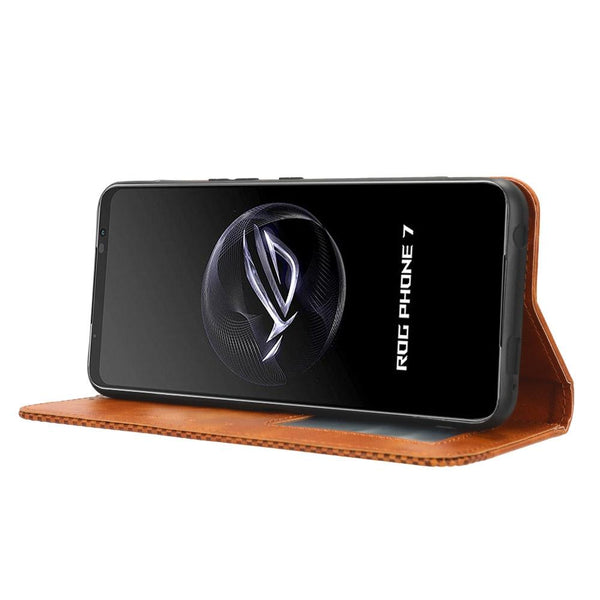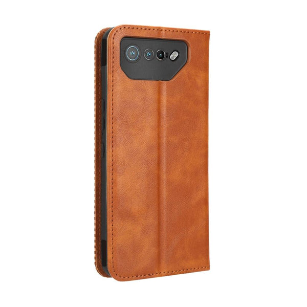 For ASUS ROG Phone 7 Magnetic Buckle Retro Texture Leather Phone Case(Brown)