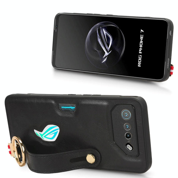 For Asus ROG Phone 7 / ROG7 Wristband Leather Back Phone Case(Black)