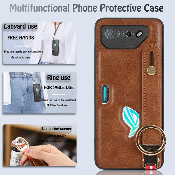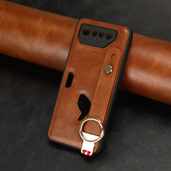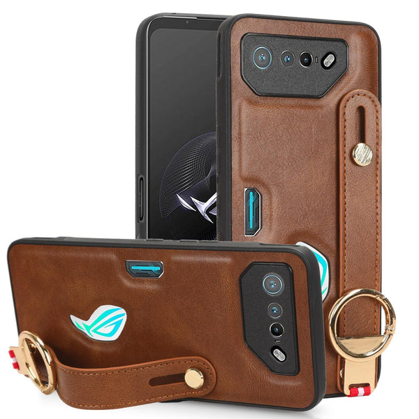 For Asus ROG Phone 7 / ROG7 Wristband Leather Back Phone Case(Brown)