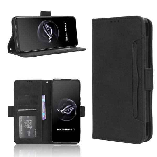 For ASUS ROG Phone 7 Skin Feel Calf Texture Card Slots Leather Phone Case(Black)