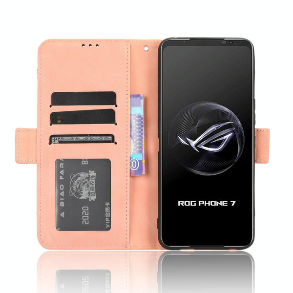 For ASUS ROG Phone 7 Skin Feel Calf Texture Card Slots Leather Phone Case(Pink)