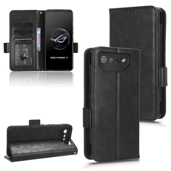 For Asus ROG Phone 7 Symmetrical Triangle Pattern Leather Phone Case(Black)