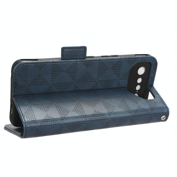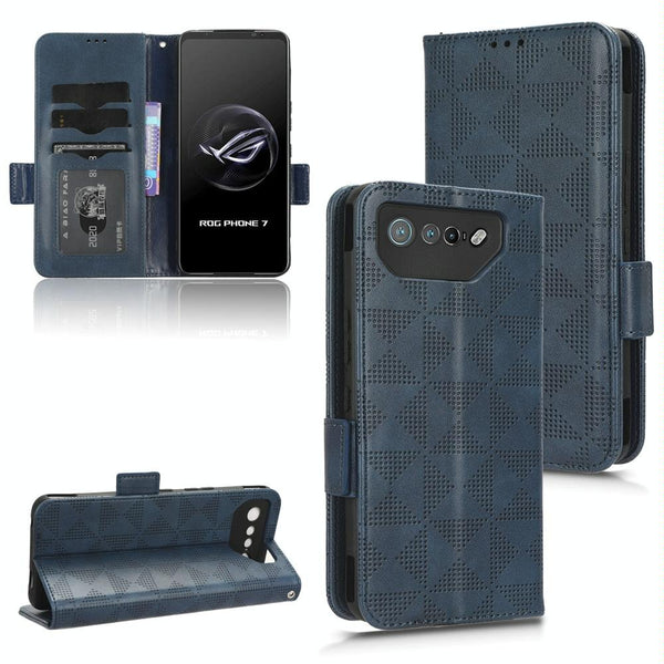 For Asus ROG Phone 7 Symmetrical Triangle Pattern Leather Phone Case(Blue)