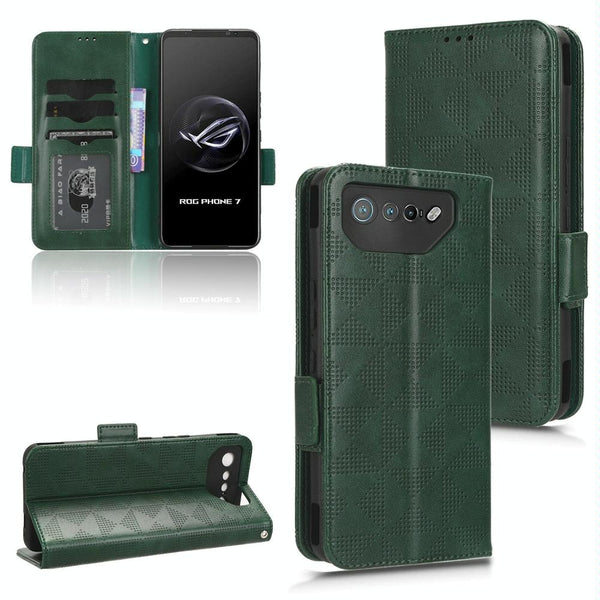For Asus ROG Phone 7 Symmetrical Triangle Pattern Leather Phone Case(Green)