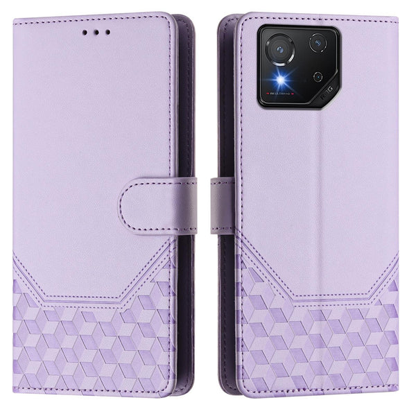 For Asus ROG Phone 8 / 8 Pro Honeycomb Embossing RFID Leather Phone Case(Light Purple)