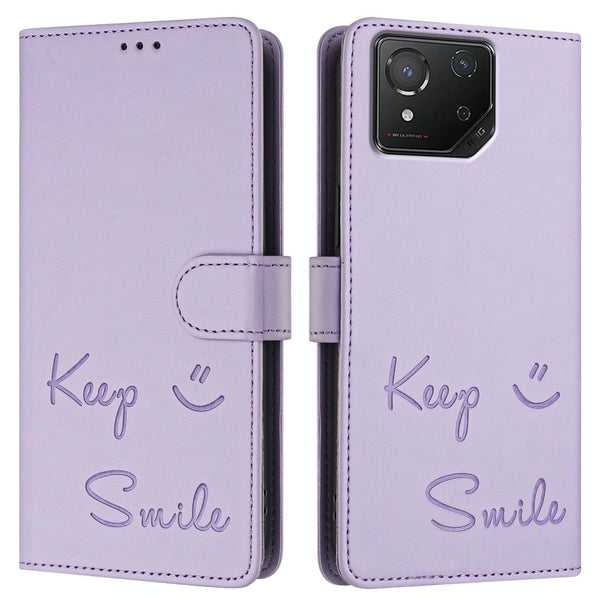 For Asus ROG Phone 8 / 8 Pro Smile Embossing RFID Leather Phone Case(Light Purple)