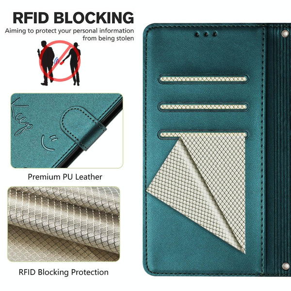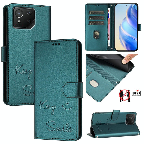 For Asus ROG Phone 8 / 8 Pro Smile Embossing RFID Leather Phone Case(Peacock Green)